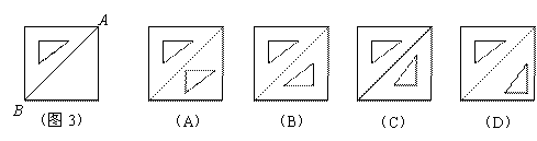 如图3是小华画的正方形风筝图案,他以图中的对角线AB为对称轴,在对角线的下方再画一个三角形,使得新的风筝图案成为轴对称图形,若下列有一图形为此对称图形,则此图为
