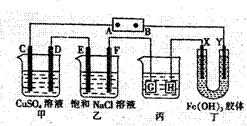 D.装置丁中X极附近红褐色交浅,说明氢氧化铁胶粒带负电荷