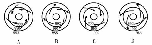 11.如下图10所示四幅图中,其中所示范围内可能有阴雨天气的是