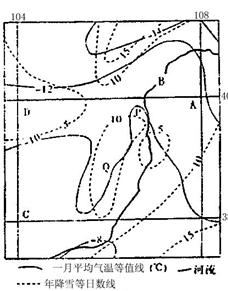 资料一:图26是宁夏附近区域一月平均气温等值线和年降雪等日数线图;