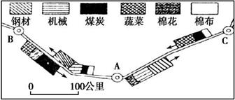 3.由A市至C市和由C市至A市,大宗货物各以何种运输方式最适宜 ( )