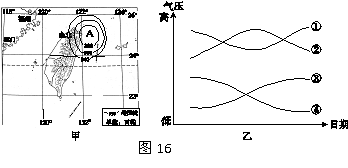A天气系统向西移动经过福州,图乙中四条曲线最能反映福州气压变化过程的是