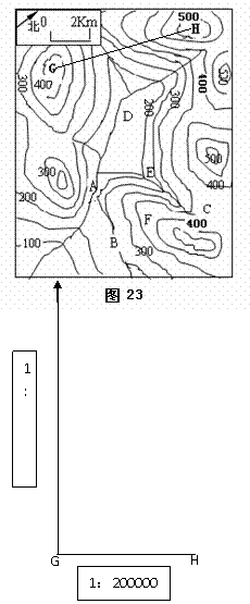(4)若G、H两地图上距离为3.6cm,则两地实地距离为__________;G与H的相对高度为___________。