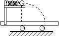 如图所示,在光滑水平面上有一质量为M的小车,在小车平台上有一质量不计的弹簧,一端固定在平台上,另一端用质量为m的小球将弹簧压缩一定距离后用细线捆住,将小车固定在平面上,而后烧断细线,小球被水平抛出落在小车的A点,A点与小球抛出时的正下方O点相距为S,若小车不固定时,将细线烧断,小球将落在车上的什么位置?