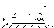 21.如图所示,质量为M=4kg的滑板B静止放在光滑水平面上,滑板右端固定着一根轻质弹簧,弹簧的自由端C到滑板左端的距离l=0.5m,这段滑板与木块A之间的动摩擦因数μ=0.2;而弹簧自由端C到弹簧固定端D所对应的滑板上表面光滑。可视为质点的小木块A质量m=1kg,原来静止与木板的左端,当滑板B受向左的水平恒力F=14N作用时间t后撤去,这时木块A恰好到达弹簧的自由端C处,假设A、B间的最大静摩擦力跟滑动摩擦力相等,g取10m/s2,求: