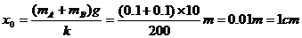 解:(1)振幅很小时,A、B间不会分离,将A和B整体作为振子,当它们处于平衡位置时,根据平衡条件得