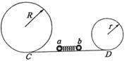 5.(14分)如图所示,半径分别为R和r (R>r)的甲乙两光滑圆轨道安置在同一竖直平面内,两轨道之间由一条光滑水平轨道CD相连,在水平轨道CD上一轻弹簧a、b被两小球夹住,同时释放两小球,a、b球恰好能通过各自的圆轨道的最高点,求: