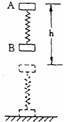 8.(13分)如图所示,质量分别为m和M的A、B两重物用劲度系数为k的轻质弹簧竖直地连接起来,使弹簧为原长时,两物从静止开始自由下落,下落过程中弹簧始终保持竖直状态。当重物A下降距离h时,重物B刚好与地面相碰,假定碰后的瞬间重物B不离开地面(B与地面作完全非弹性碰撞)但不粘连。为使重物A反弹时能将重物B提离地面,试问下落高度h至少应为多少?(提示:弹簧形变量为x时的弹性势能为EP=