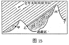 B、丙地海拔高,空气稀薄,对太阳辐射削弱少