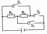 D. 当S1、S2、S3均闭合时,R1和R2串联