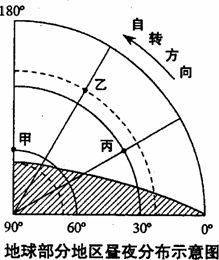 (2)比较甲、乙、丙三地,一年中昼夜长短变化最小的是 地。