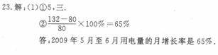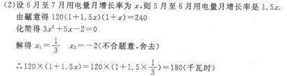 (2)今年小芳家添置了新电器.已知今年5月份的用电量是120千瓦时,根据2009年5月至7月用电量的增长趋势,预计今年7月份的用电量将达到240千瓦时.假设今年5月至6月用电量月增长率是6月至7月用电量月增长率的1.5倍,预计小芳家今年6月份的用电量是多少千瓦时?