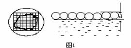 介绍并定性地演示:如果油在水面上尽可能地散开,可认为在水面上形成单分子油膜,可以通过幻灯观察到,并且利用已制好的方格透明胶片盖在水面上,用于测定油膜面积。如图1所示。