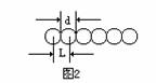 看物理课本上彩色插图,钨针的尖端原子分布的图样:插图的中心部分亮点直接反映钨原子排列情况。经过计算得出钨原子之间的距离是2×10-10m。如果设想钨原子是一个挨着一个排列的话,那么钨原子之间的距离L就等于钨原子的直径d,如图2所示。