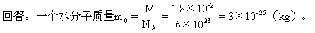 提问学生:1mol水的质量是M=18g,那么每个水分子质量如何求?