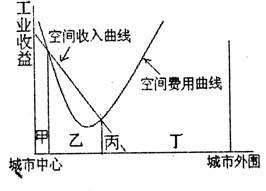 下图为某工业收益随空间变化曲线图,据此完成7-9题。