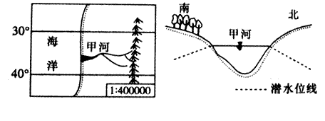 13.甲河流主要补给形式及出现最大汛期的季节分别是 ( )