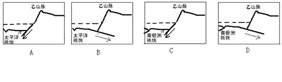 14.下图中能正确反映安第斯山脉的形成的是 ( )