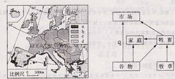 左下图为欧洲四种农业地域类型分布图,右下图是该区城某种农业地域类型的经营方式示意图,读图回答