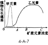 如图4-A-7表示土壤中甲、乙两种矿质元素浓度变化与植物生长速率的关系,据图分析回答: