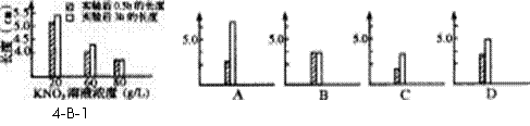 4.用打孔器取同一萝卜5cm长的直条,分成4组,其中3组分别置于20、60、80g/L的KNO3溶液中,测量结果如图4-B-1。预计在40g/L的KNO3溶液中的测量结果可能是( )