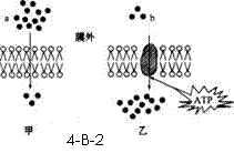 如图4-B-2表示小肠绒毛上皮细胞中的细胞膜对不同物质的转运(每种转运的方向由箭头表明,黑点的数量代表每种物质的浓度),下列叙述正确的是( )