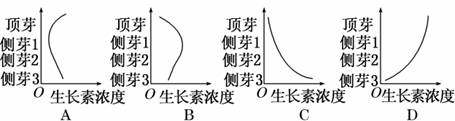 2. 下列四个图中,能正确反映生长素浓度与芽位置关系的是(侧芽1、侧芽2、侧芽3分别表示距顶芽的距离由近到远)