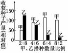 在某适宜条件下将生态和生理特性十分相似的两种农作物(甲和乙)混种在一起,对实验数据统计处理后,得到如图结果。预测当播种比例为甲∶乙=5∶5时,种群竞争能力将表现出的趋势最可能是