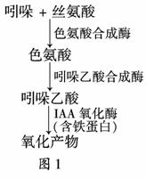 生长素在植物体内有一个合成和分解的代谢过程(如图1,IAA氧化酶是一种含铁蛋白)。研究小组据此提出假设:赤霉素通过促进生长素的合成提高生长素含量。