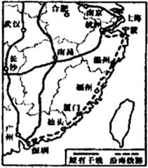 我国正在建设杭州到深圳的沿海铁路,它对东南沿海的发展将起到巨大的作用。下图