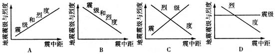 17.图中能正确反映震中距与地震震级及烈度关系是