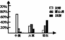 实验测得小麦、大豆、花生三种生物干种子中三大类有机物含量如右图,有关论述正确的是