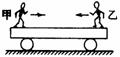 14、如图所示,一小车静止在光滑水平面上,甲、乙两人分别站在左右两侧,整个系统原来静止。则当两人同时相向走动时( )