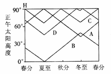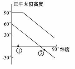 读正午太阳高度极值随纬度分布图,完成29-30题