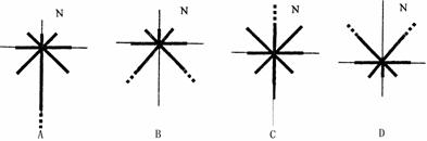 17.下图中的四条折线所表示的纬度与数码相对应的一组正确的是( )