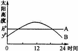 右图是北半球夏半年某日A、B两地太阳高度角随时间的变化状况,读图后回答(每空2分,共8分)