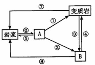 (1)根据图中箭头的方向,将各数字所代表的地质作用填入空格内:属于冷却凝固是