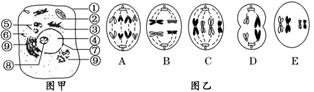 (6)乙图中细胞有染色体 条,①和⑤两条染色体是经过分裂间期 形成的。