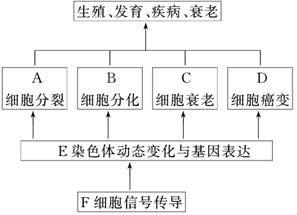 解析:(1)细胞的一生经历分裂、分化、衰老和凋亡等阶段,这些过程对于人体来说都是有积极意义的。(2)细胞分化是细胞形态、结构和功能发生稳定性差异的过程。(3)因有细胞分化等过程,可判断此生物是多细胞生物;含有染色体,则为真核生物的细胞。(4)考查对有丝分裂不同时期染色体规律性变化的理解以及细胞分化的实质--在特定的时间和空间条件下,基因的选择性表达。(5)动物的生命活动主要受神经系统的调节。