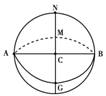 (2010年盐城调研)读图,N为北极点,大圆为经线圈,ACB为赤道, 据此完成4-5题。