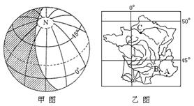 26.甲图是“北京时间”14点的太阳光照示意图,乙图是某个国家的示意图,读图完成下列要求。(15分)