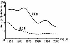 右图是我国建国以来人口出生率与死亡率图,读图回答2-3题。