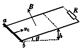 如图所示,光滑平行的金属轨道平面与水平面成θ角,两轨道上端用一电阻R相连,该装置处于匀强磁场中,磁场方向垂直轨道平面向上.一质量为m的金属杆ab以初速度v0从轨道的底端向上滑行,滑行到某一高度h后又返回到底端.若在运动过程中,金属杆始终保持与轨道垂直且接触良好,已知轨道与金属杆的电阻均忽略不计,则( )
