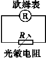 如图所示,将多用电表的选择开关置于欧姆挡,再将多用电表的两支表笔分别与光敏电阻R的两端相连,这时表针恰好指在刻度盘的中央.若用不透光的黑纸将R包裹起来,则表针将向 (填“左”或“右”)转动;若用手电筒光照射R,则表针将向 (填“左”或“右”)转动.