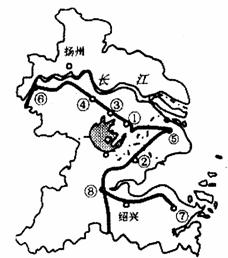 “长三角”是“长三角都市经济圈”的简称,是指镇江以东,包括上海、无锡、苏州、常州、扬州、泰州,镇江、南京、南通、杭州、宁波、舟山、绍兴、湖州、嘉兴等15个城市(包括台州16个城市),预计2005年该地区以约占全国面积的1%,人口的6%,生产出约占全国25%的国内生产总值,成为继纽约经济圈、北美五大湖经济圈、东京经济圈、巴黎经济圈、伦敦经济圈之后的第六大经济圈,是名副其实的中国经济引擎。据此资料和右图回答下列问题。(36分)