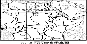 [解析]:A河是尼罗河,流域内主要属于热带草原气候和热带沙漠气候,B河是刚果河是热带雨林气候。