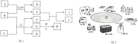 27.(14分)A~I为常见物质,其组成元素的原子序数均不超过20。它们之间的相互转化关系如图1所示,其中B为单质,其他物质均为化合物。C的用途如图2所示,D、G、H、I在常温下均为气体,D与I为可燃性气体且分子中电子数相等,J在工业上可以制取漂白粉。