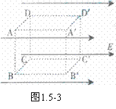 图1.5-3所示的匀强电场E的区域内,由A、B、C、D、A'、B'、C'、D'作为顶点构成一正方体空间,电场方向与面ABCD垂直.下列说法正确的是( )