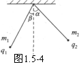 如图1.5-4所示,两个带电荷量分别为q1、q2,质量分别为m1、m2的小球,以等长的丝线悬挂于一点,下列情况正确的是( )