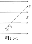如图1.5-5所示,空间有一水平方向的匀强电场,初速度为v0的带电粒子从A点射入电场,在竖直平面内沿直线从A运动到B,在此过程中粒子的( )